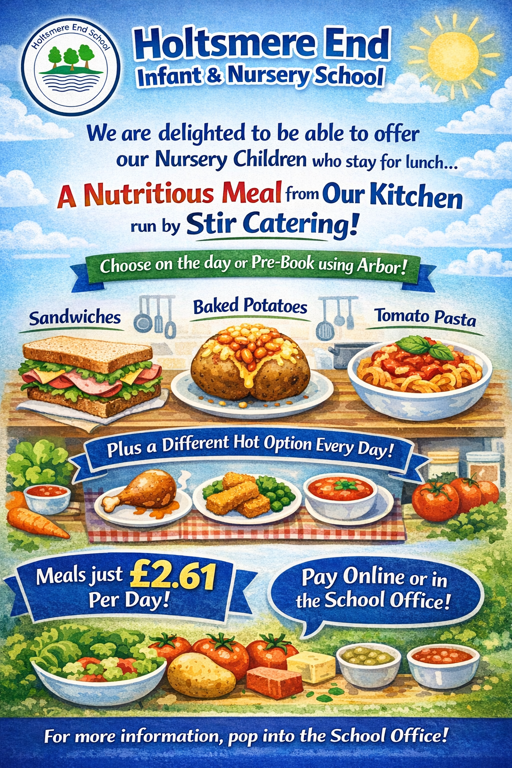 Stir Catering now offer lunches to our Nursery Children - Please speak with the class teacher or the school office if you are interested.