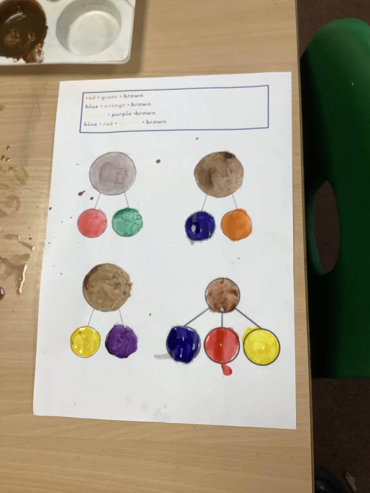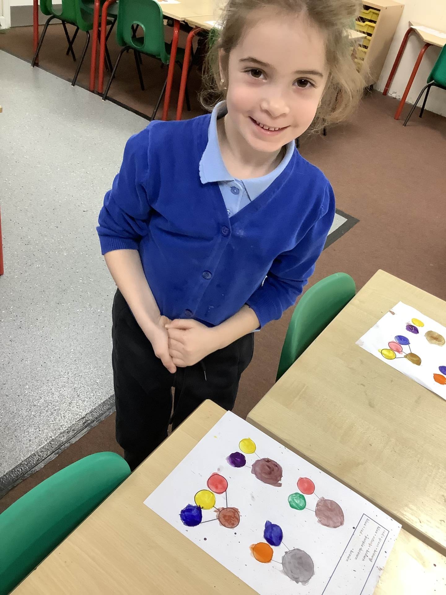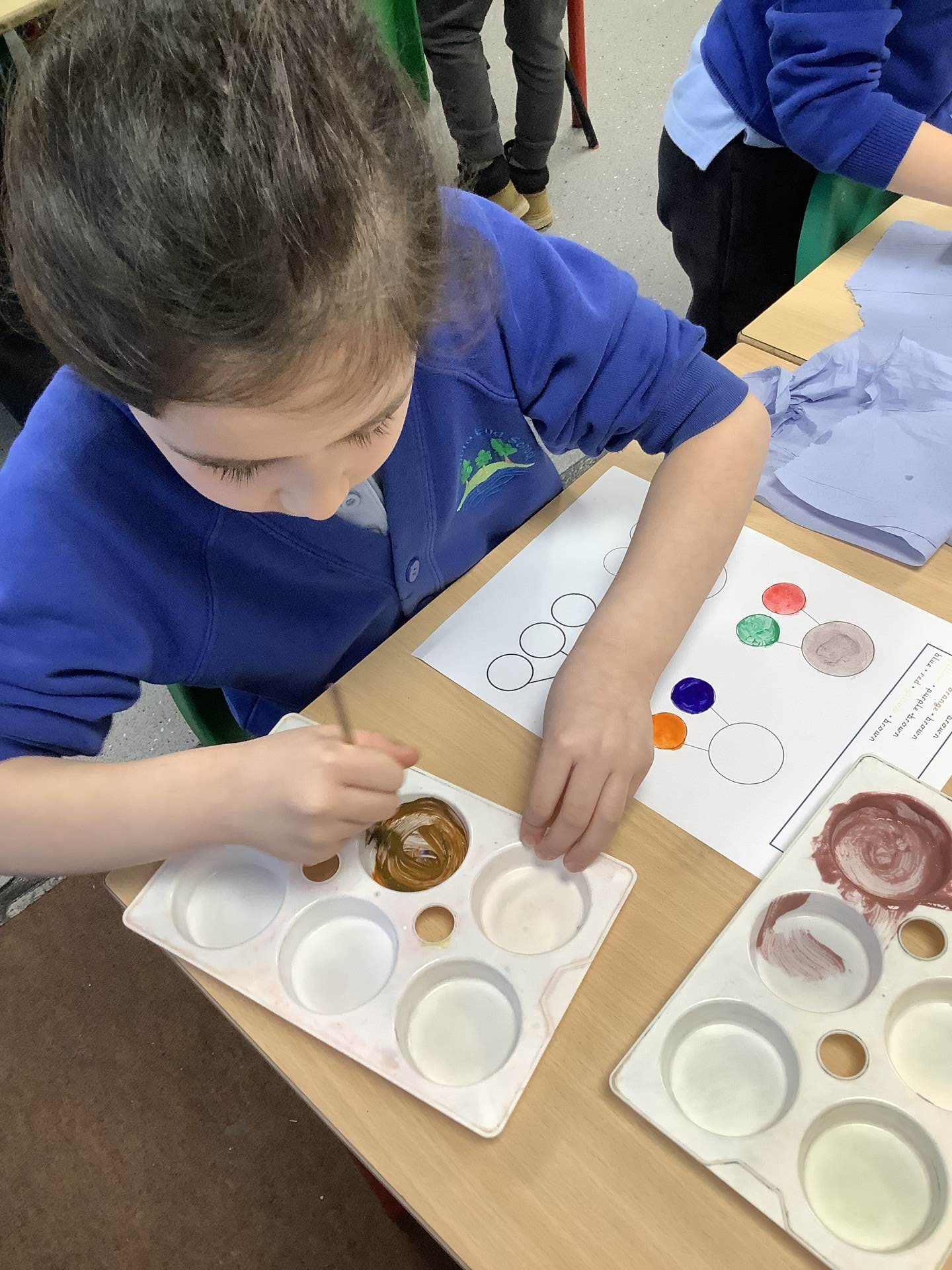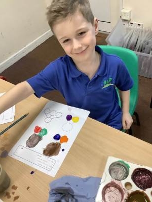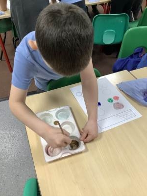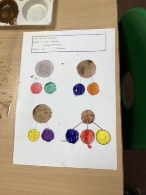 We also learnt about colour mixing for brown. The children experimented with mixing a range of different primary and secondary colours to create brown.