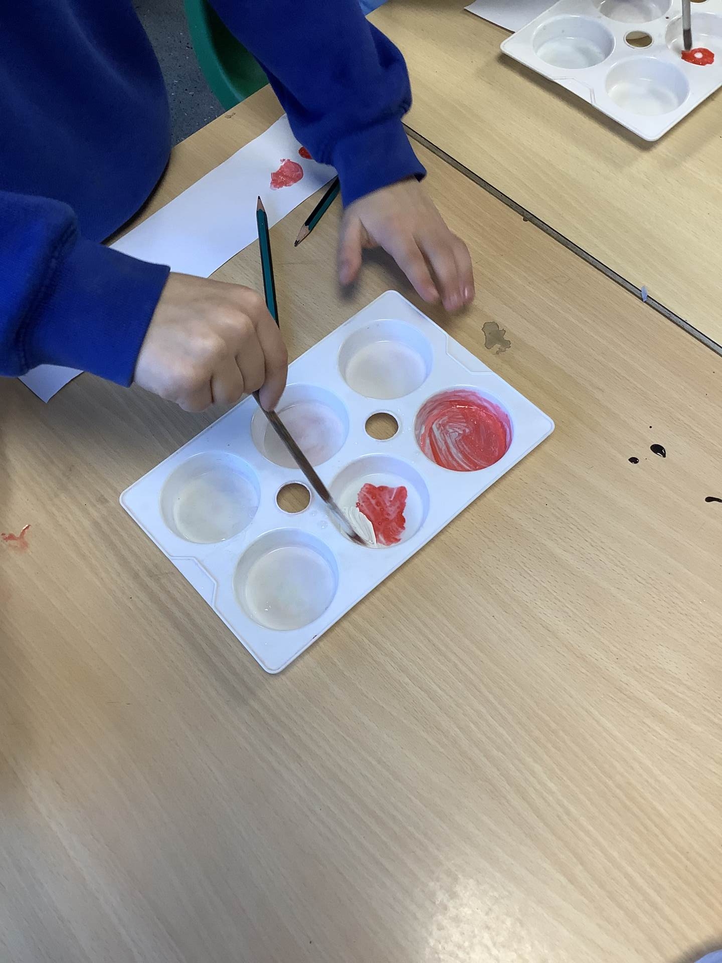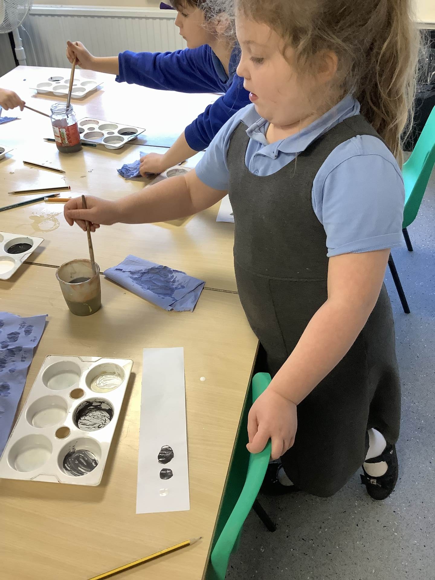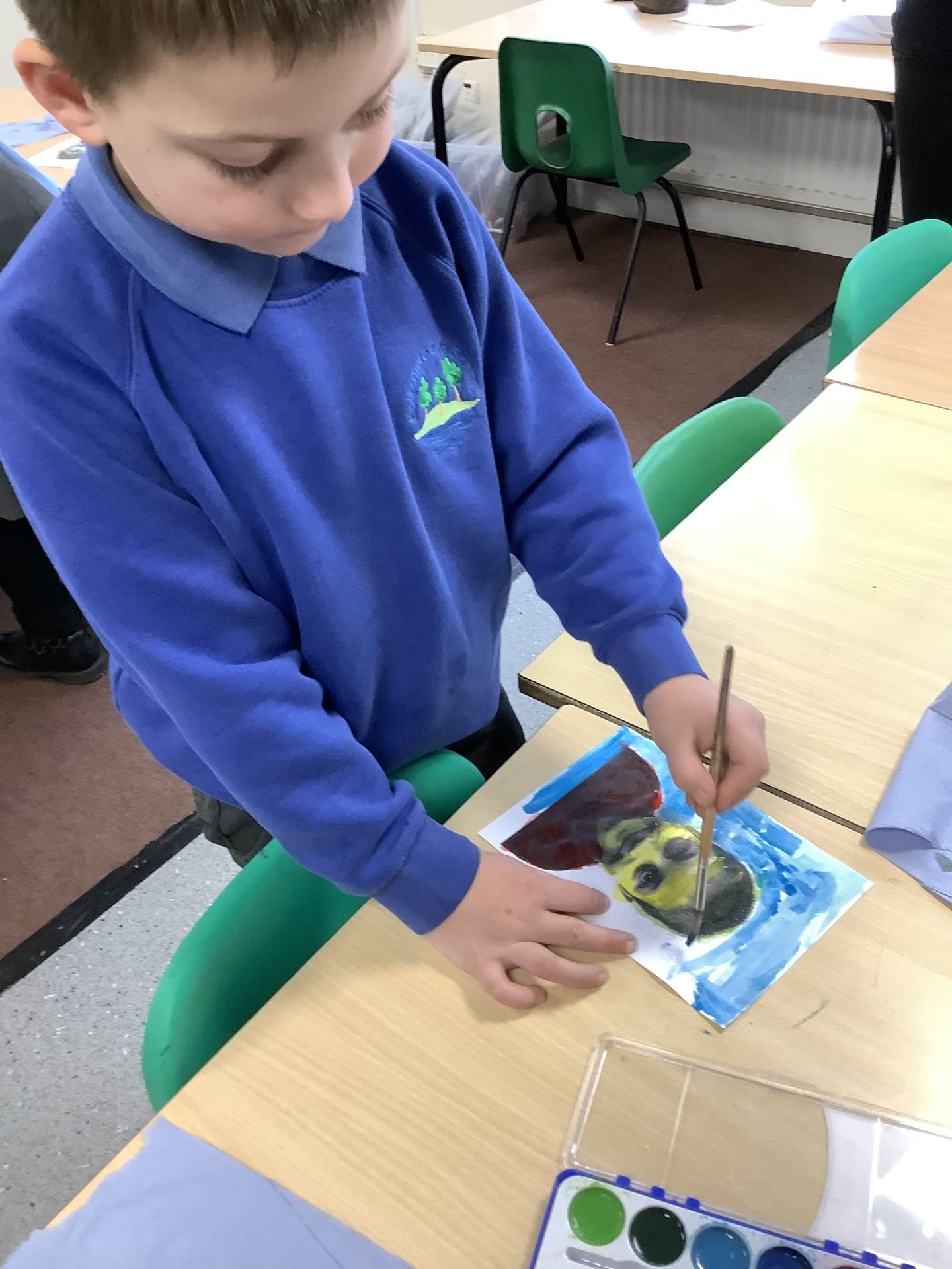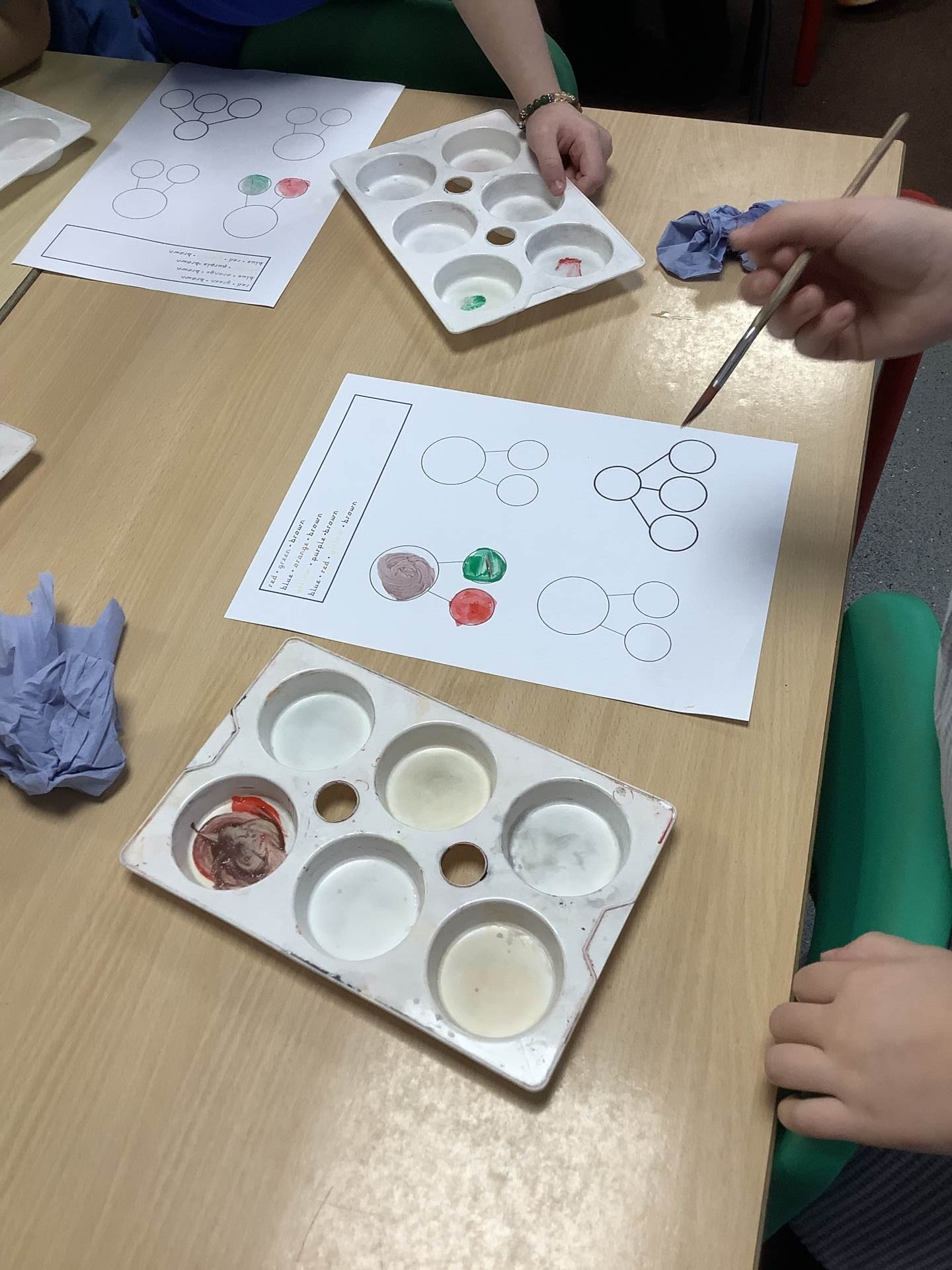 We also learnt about colour mixing for brown. The children experimented with mixing a range of different primary and secondary colours to create brown.