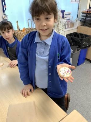 In Maths, we have been making values with money, understanding why we write ‘p’ after amounts.