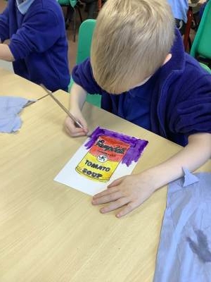 In art week this week, we explored art by Andy Warhol who uses bright, bold and contrasting colours. The children recreated his famous ‘Can of Soup’ artwork, choosing careful brush sizes, and painted portraits of themselves.
