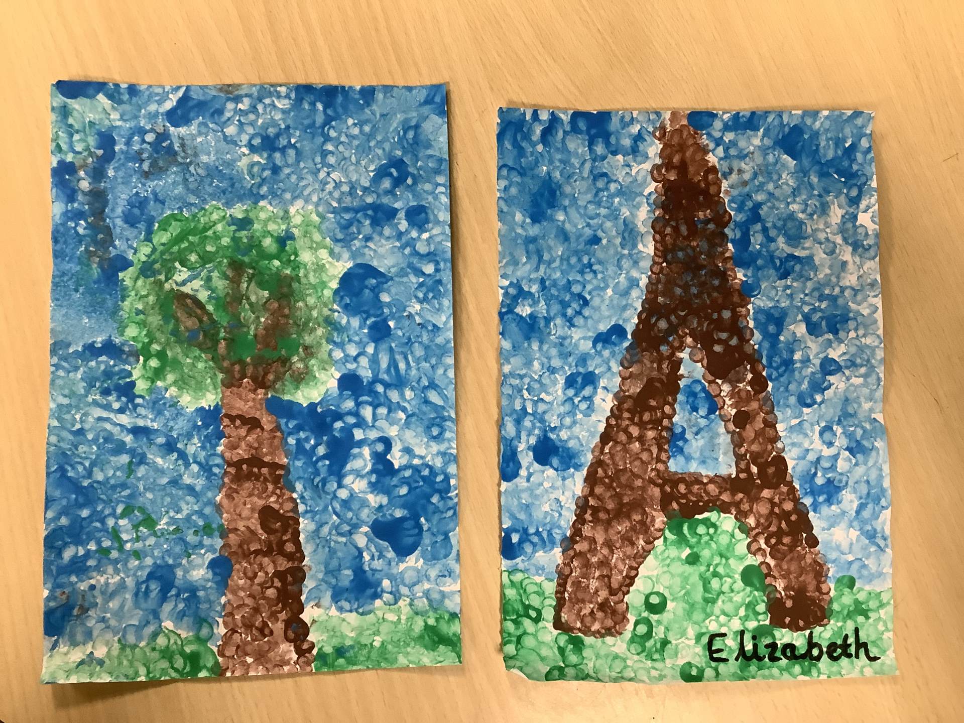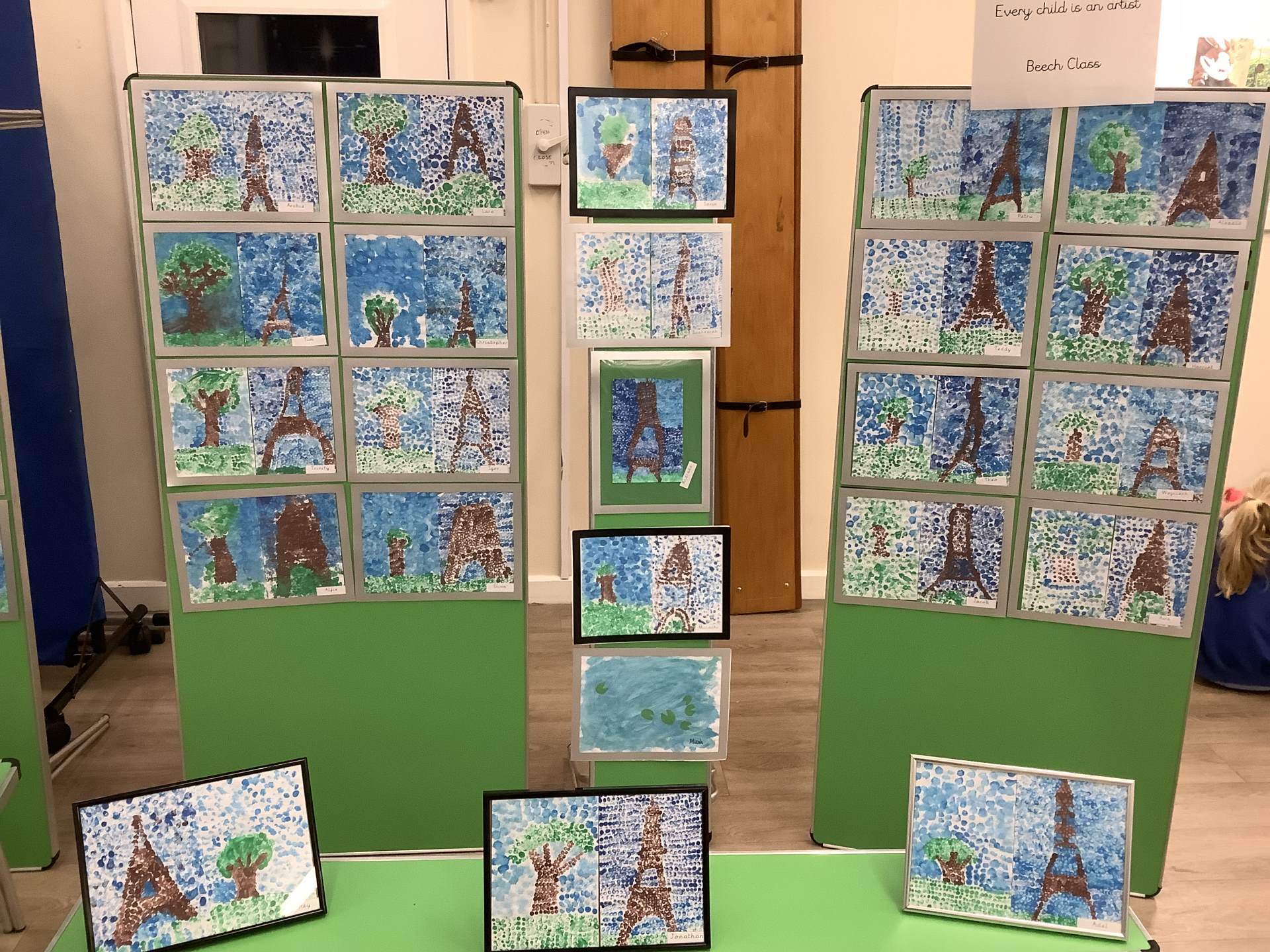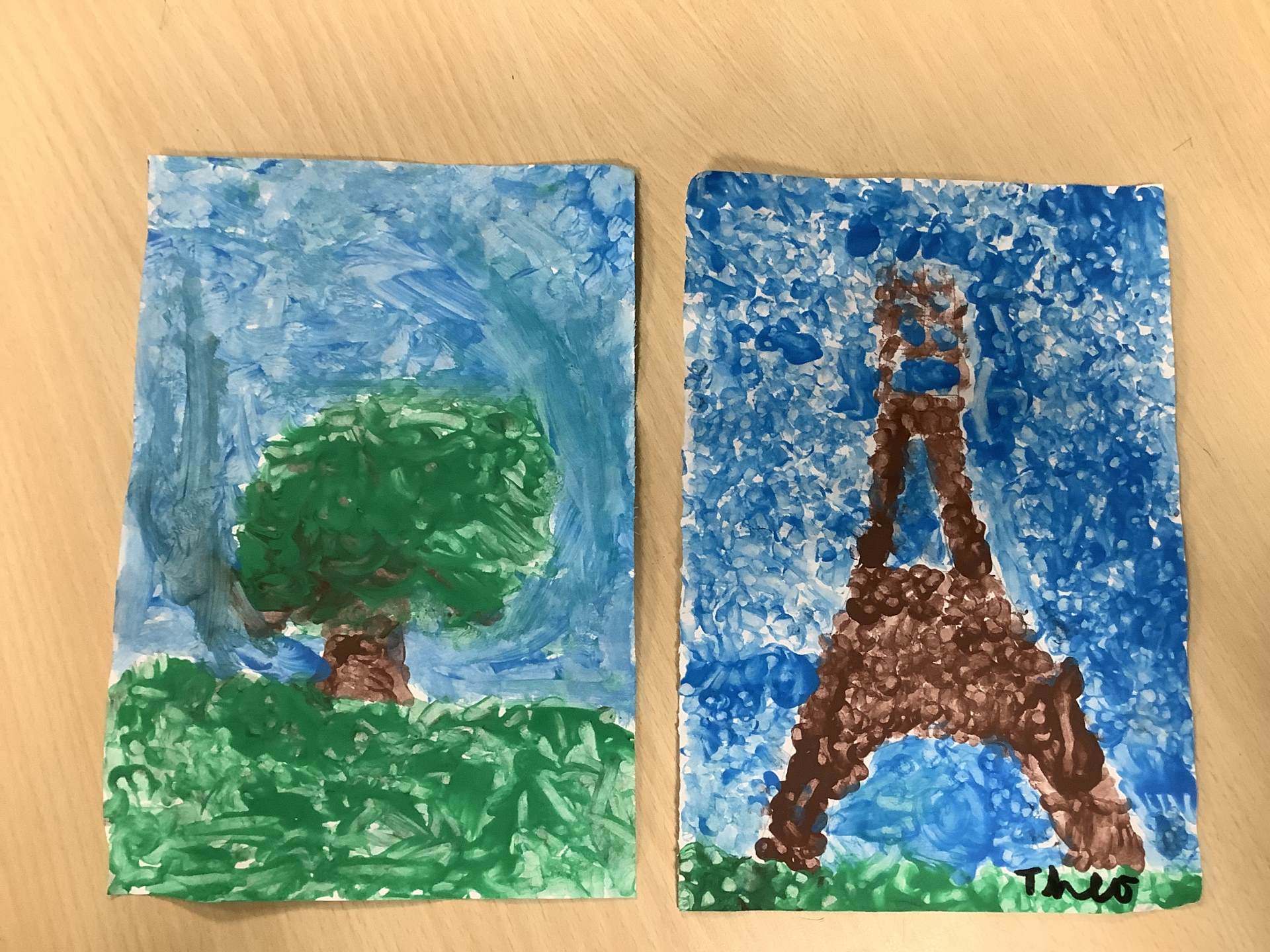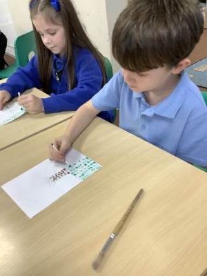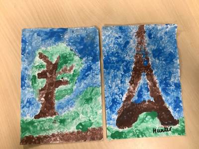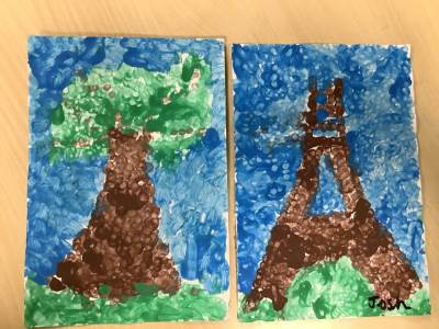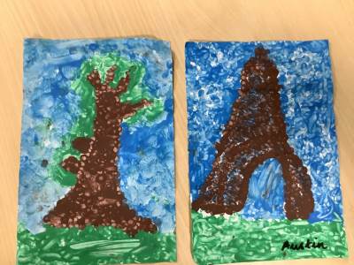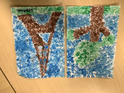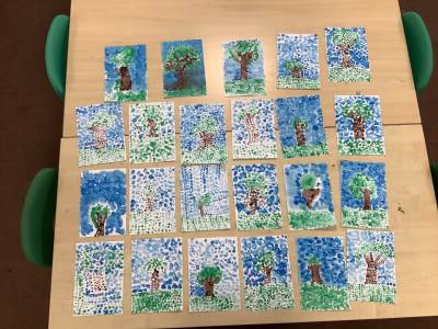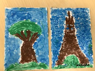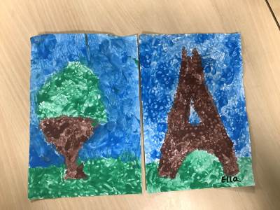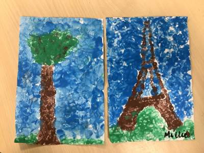 In art week, we learnt about the artist Georges Seurat and recreated pointillist artwork. The children spent time carefully painting a tree and the Eiffel Tower in pointillist style with a cotton bud.