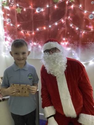 In English, we wrote letters to Santa, asking him to visit our school using conjunctions to explain why… and he actually did! What a lovely surprise.
