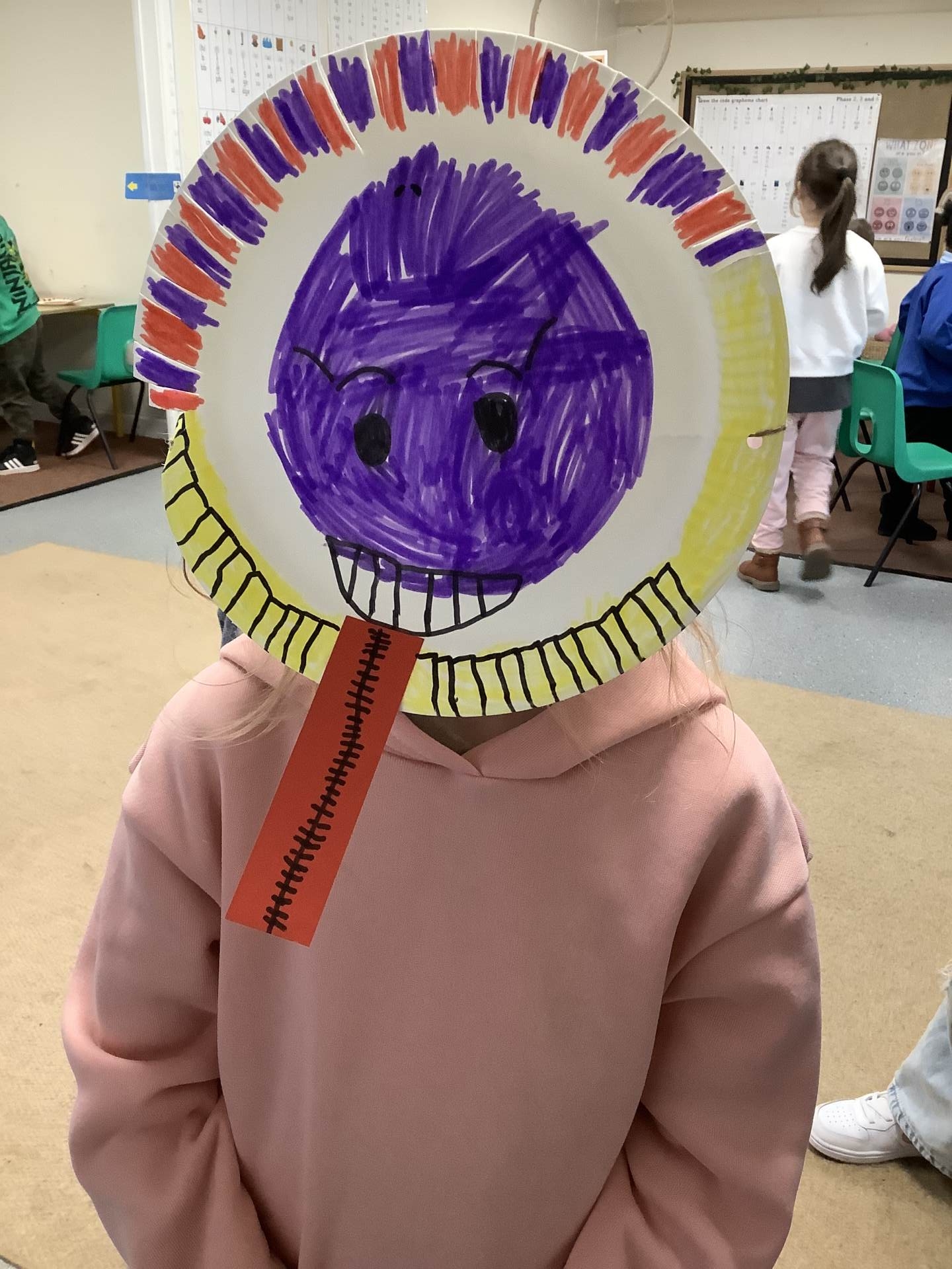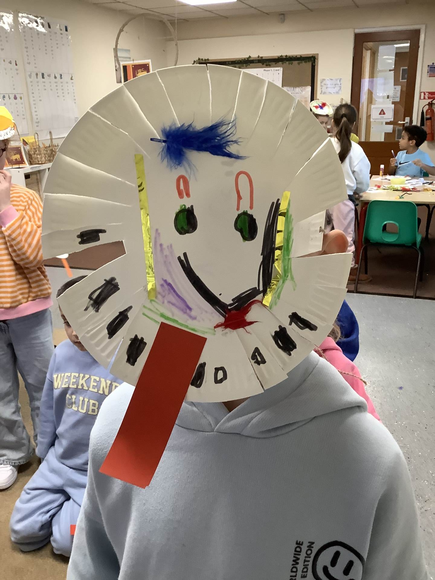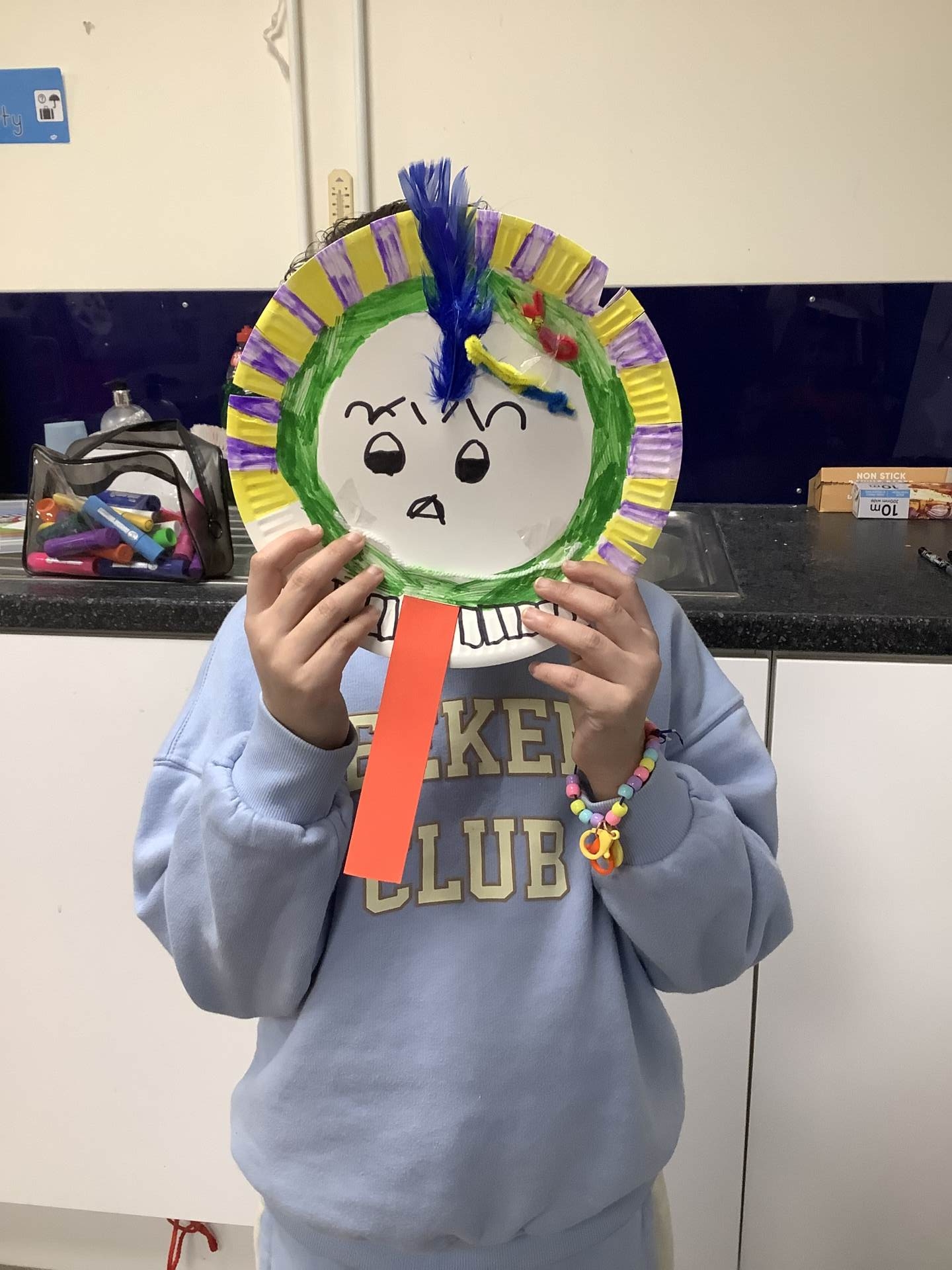 In PE, we worked in groups to recreate ‘faces’ with various PE equipment.