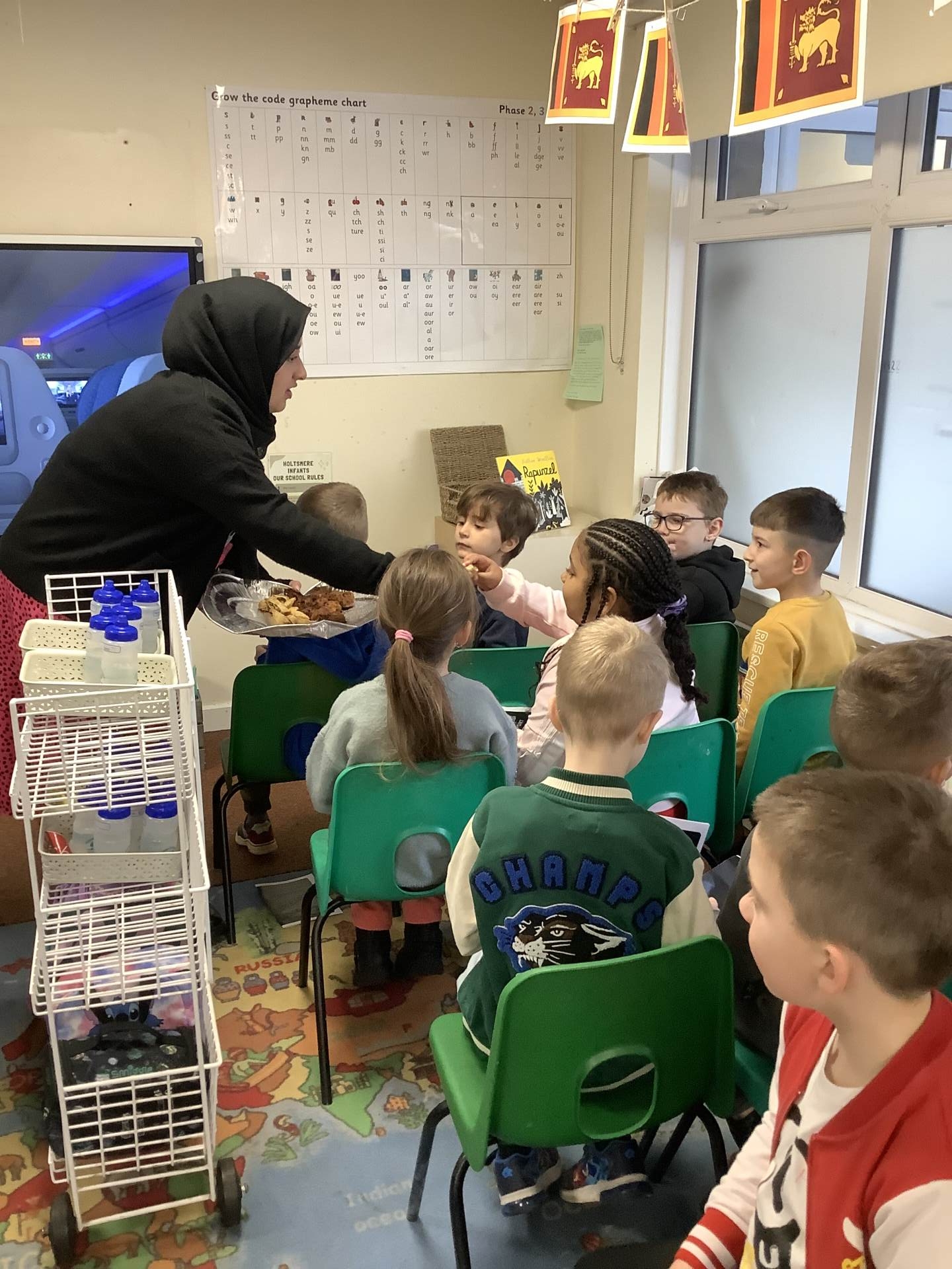 On Tuesday, we kickstarted our ‘Journey to Sri Lanka’ Geography topic with an actual visit to Sri Lanka! The children arrived at the airport where they went through security, entered the lounge and then boarded the plane. On board, they enjoyed samosas and onion bhajis for refreshments. When they landed in Sri Lanka, their luggage was checked and scanned to ensure all articles of clothing were suitable for the tropical climate.