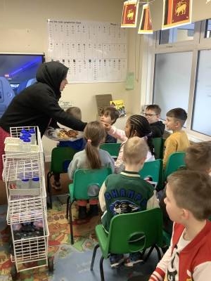 We were very fortunate to have a visit from a Rabbi on Wednesday. He taught us a lot about Judaism and we were able to try on kippas and talits.