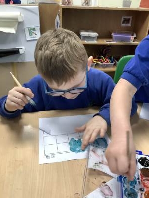 In English this week, the children have been practicing caption writing. We have been writing short caption instructions for Jasper to plant his bean. We have also been practicing gardening to write our own class gardening book next week. In Maths, we have been using a beadstring to practice finding one more and one less with numbers up to 10. In Geography, we have been making a map of our local area Woodhall Farm making sure we include all key features such as school, the Community Centre, dentist, shops and doctors. We even added symbols to our map!