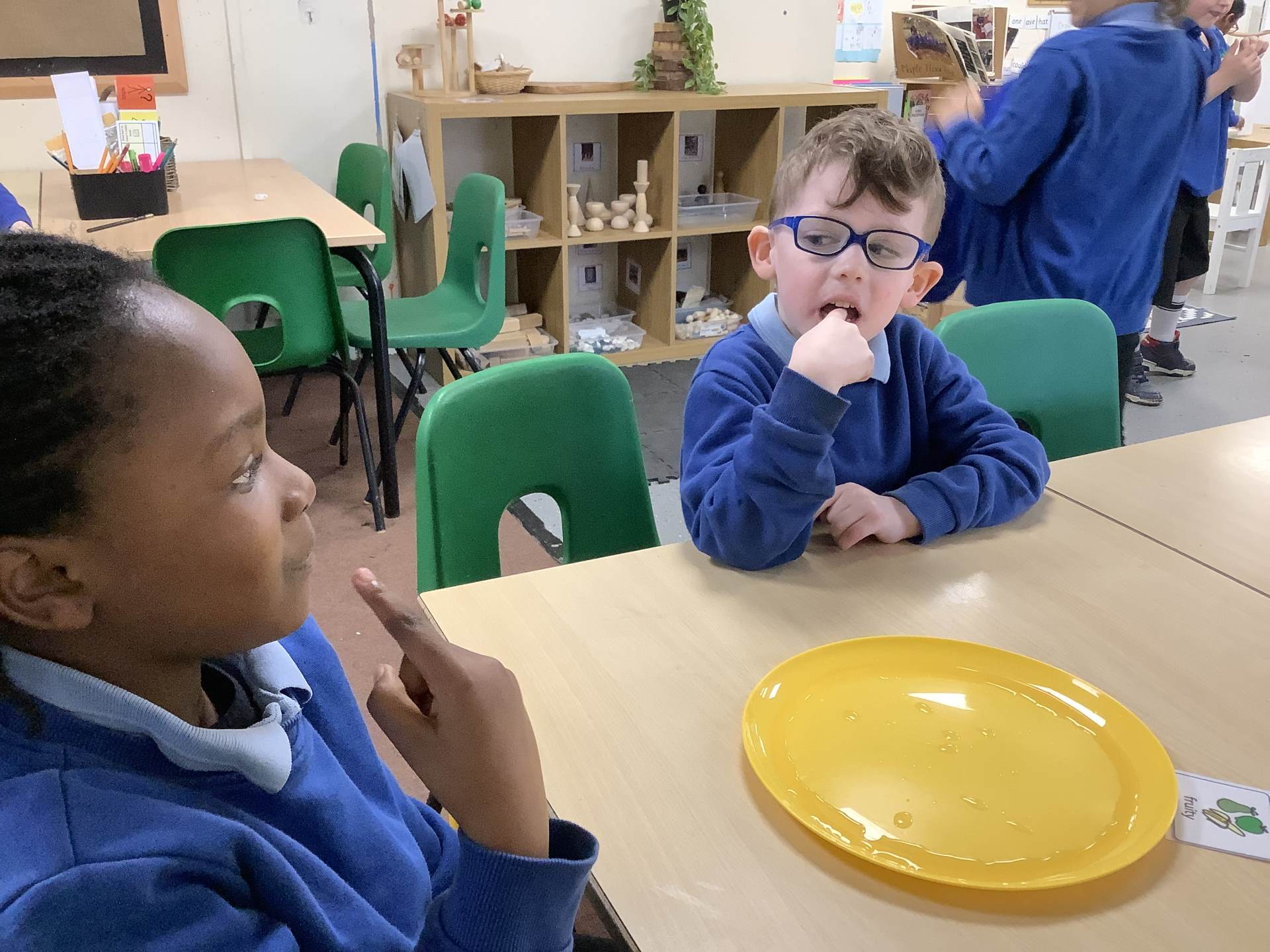 In Maths this week we have been exploring naming 2D shapes and their properties. We have been stating how many sides and corners each shape has. In English, we have been planning our own stories to entertain based on the book ‘That’s not my story’. Next week, we will become authors and illustrators and make our own books. We will then share these with the children in Reception. In Geography, we have been investigating what a cold place is and what a hot place is and the difference between them.