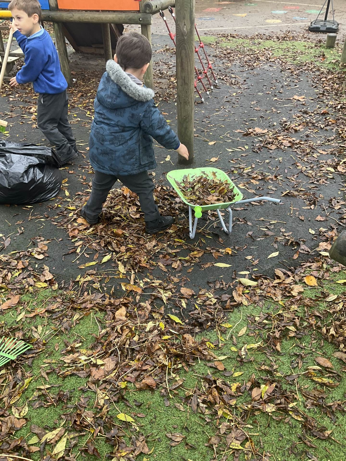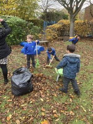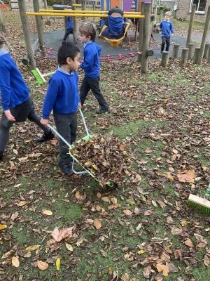 We have also been helpful this week and have been sweeping and raking the autumn leaves and helping to remove them