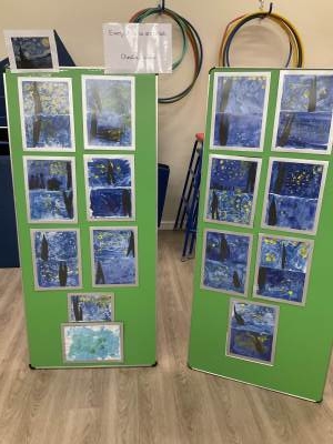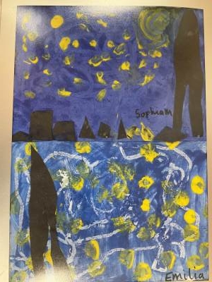 We have had a very busy final week at school. We performed our Christmas carols for our parents and it was brilliant! We looked at the artist, Van Gough and recreated the painting ‘Starry Night’. We displayed them in our school gallery. We also had a surprise visit from Santa too!